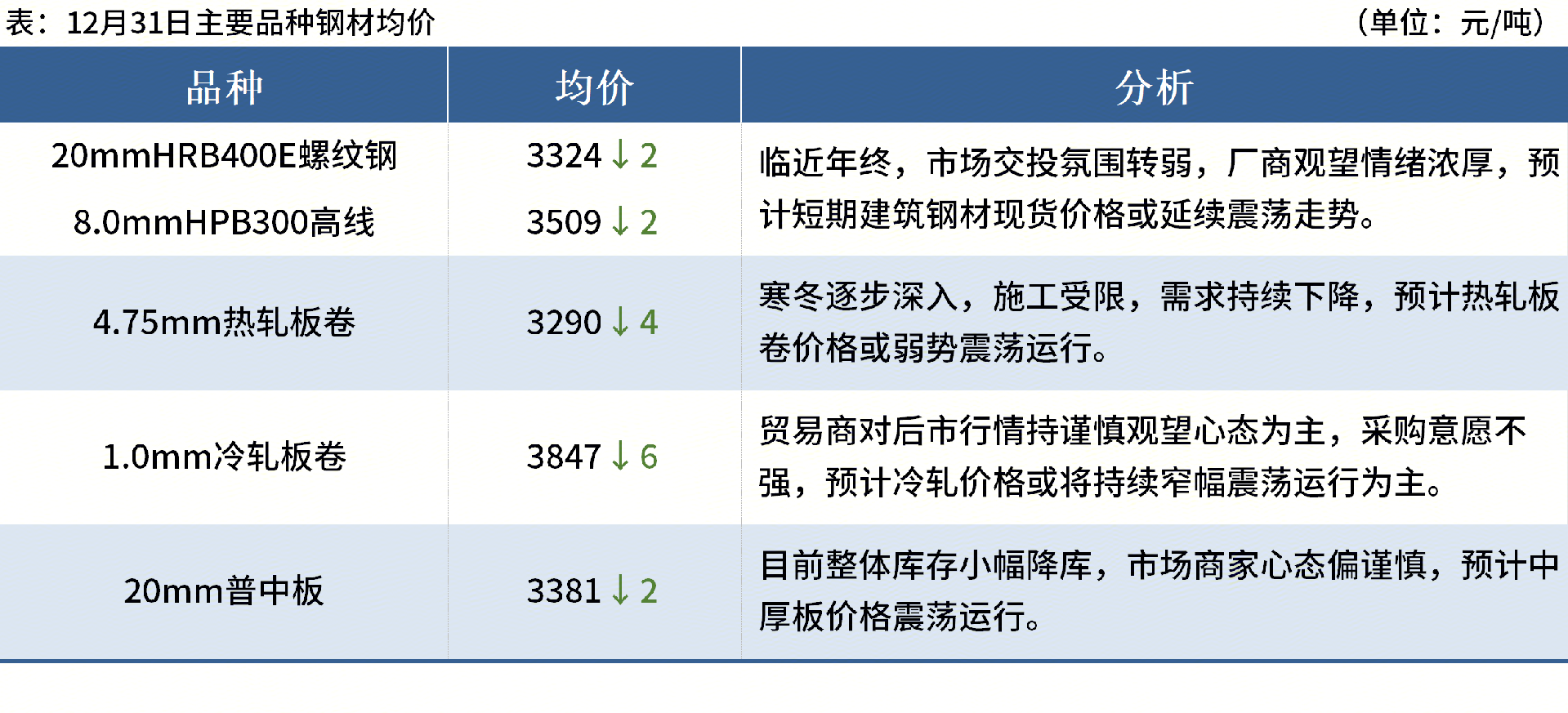 ◎1月3日江蘇永鋼出臺(tái)1月上旬出廠價(jià),螺紋鋼平穩(wěn)、線材盤(pán)螺上調(diào)50元/噸,現(xiàn)螺紋鋼3450元/噸,線材盤(pán)螺3700元/噸。