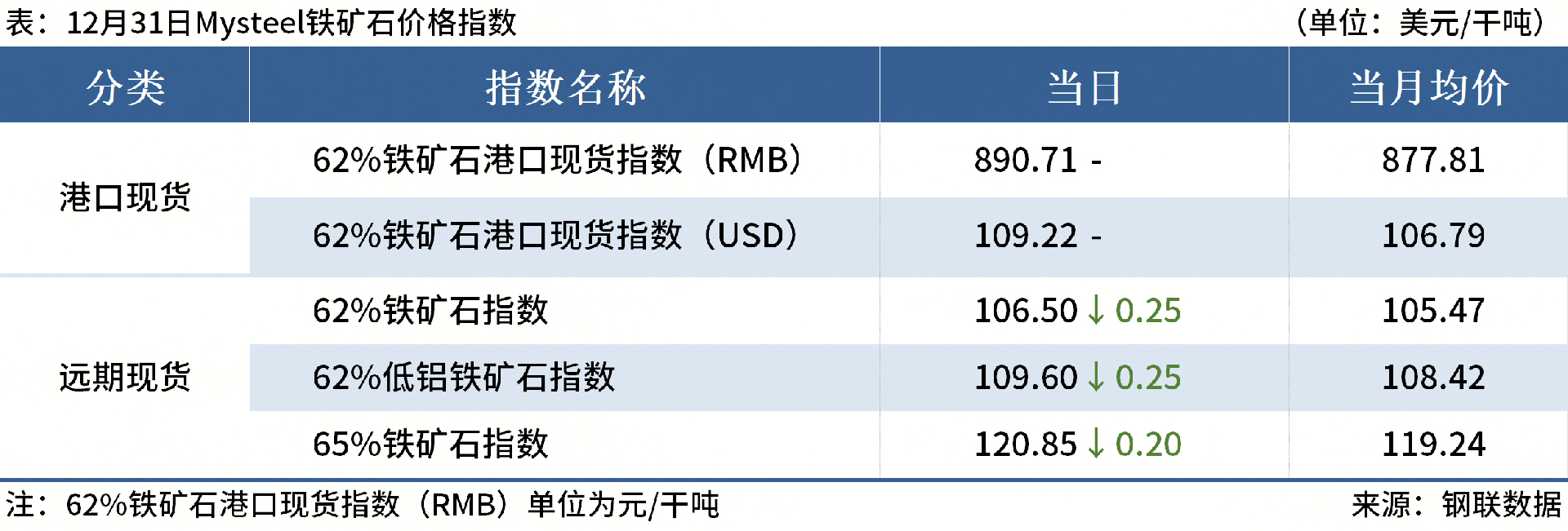 ◎2025年12月31日,全國(guó)主港鐵礦石成交61.80萬(wàn)噸,環(huán)比減55.4%;237家主流貿(mào)易商建筑鋼材成交8.28萬(wàn)噸,環(huán)比減11.2%。