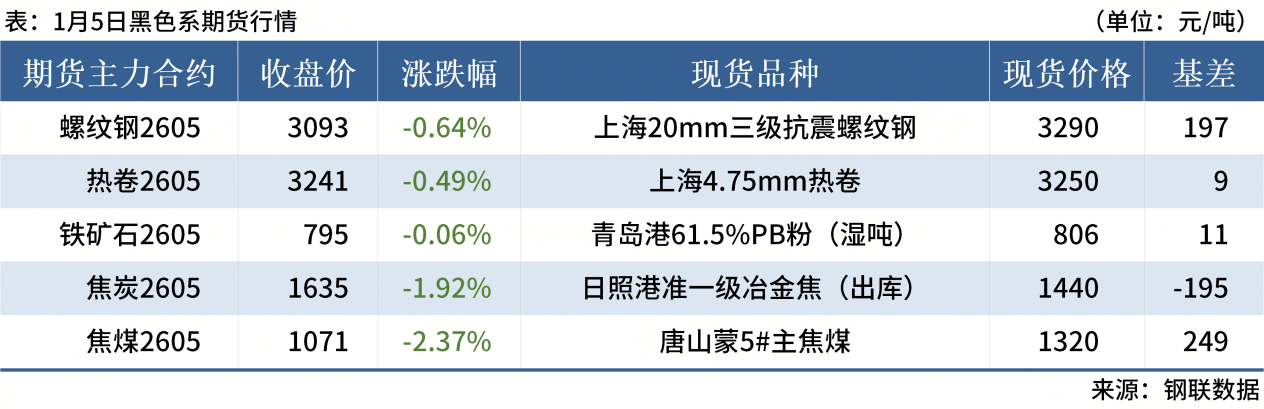 ◎ 1月5日,全國(guó)主港鐵礦石成交101.17萬(wàn)噸,環(huán)比增121.9%;237家主流貿(mào)易商建筑鋼材成交8.68萬(wàn)噸,環(huán)比減4.6%。