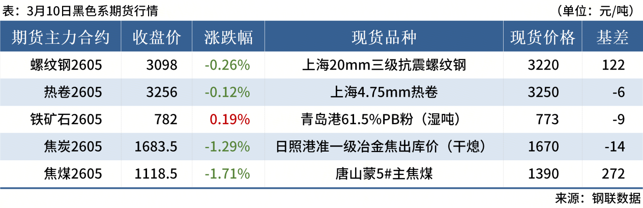 ◎ 3月10日,全國(guó)主港鐵礦石成交97.00萬(wàn)噸,環(huán)比增41.2%;237家主流貿(mào)易商建筑鋼材成交8.40萬(wàn)噸,環(huán)比減27.7%。