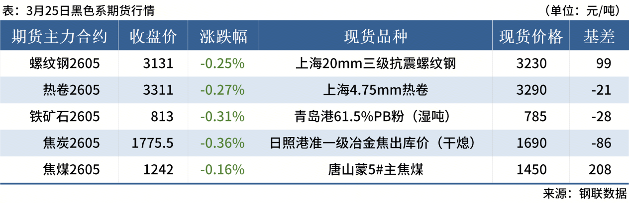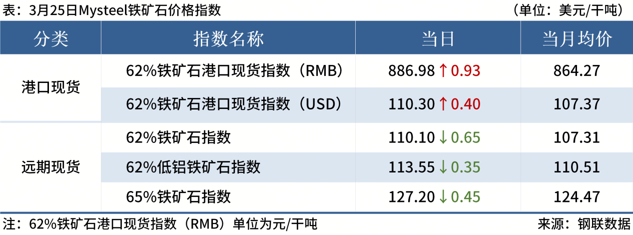 ◎ 3月25日,全國主港鐵礦石成交85.50萬噸,環(huán)比增13.2%;237家主流貿(mào)易商建筑鋼材成交8.57萬噸,環(huán)比減8.4%。